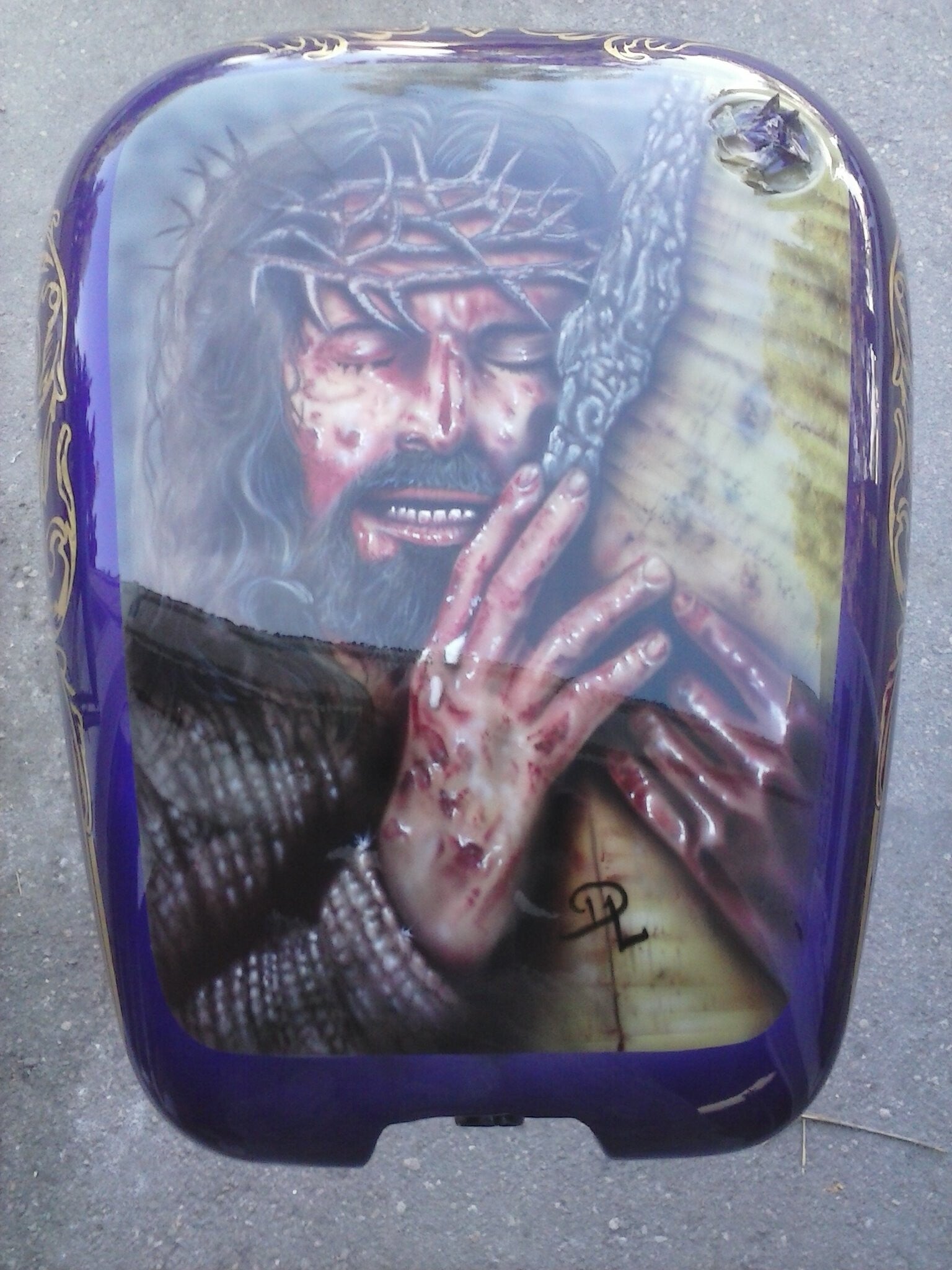 With Dappa Dan, you can expect nothing less than a masterpiece. His pricing is dependent on the customer's request and turnaround time depends on his present workload. He only uses high-quality Automotive Acrylic Urethane Paints and finishes his work with 3 coats of High Build Urethane Clear for a glossy shine. Rest assured, your airbrushed piece will be a work of art.