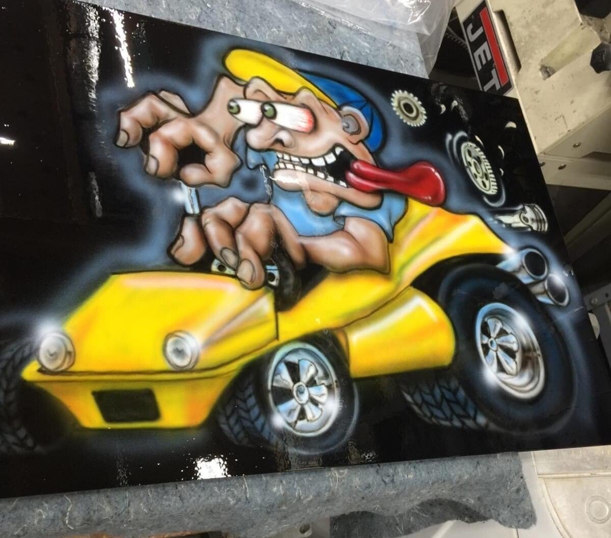 In addition to airbrushing, Dappa Dan also offers dings and dent repair, as well as base coat and clear coat services. For more information, don't hesitate to contact him. He may even provide pick up and delivery or shipping services for your convenience. Trust Dappa Dan to bring your vision to life through his skilled touch.
